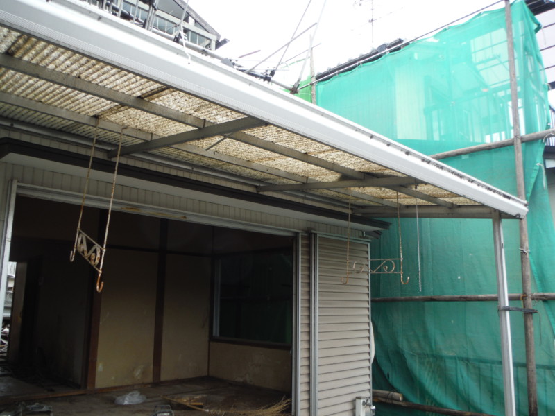 屋根から解体し、破片や屑が舞わないように慎重に作業を進めます。