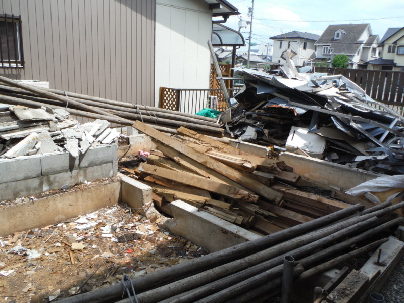 建物の解体工事が終わりました。 コンクリートや木屑などの廃材を撤去していきます。