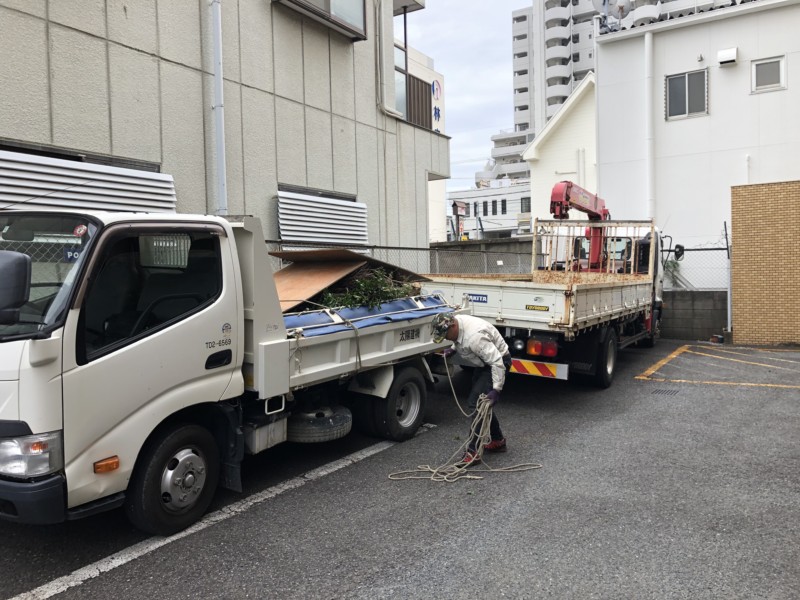 重機を使用して、そのまま積み込みできれば一番早いのですが、毎回そういうわけにはいきません。