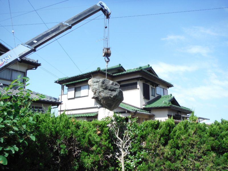 庭石は撤去工事の中でも、重量物です。