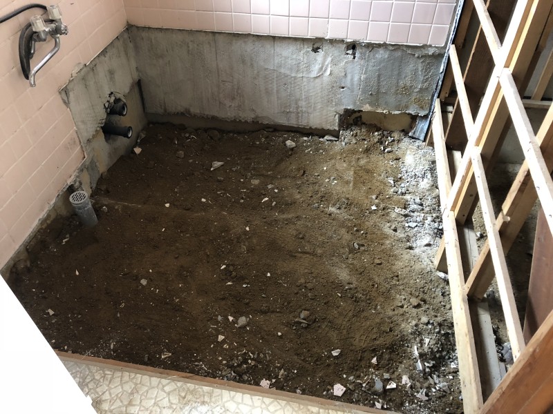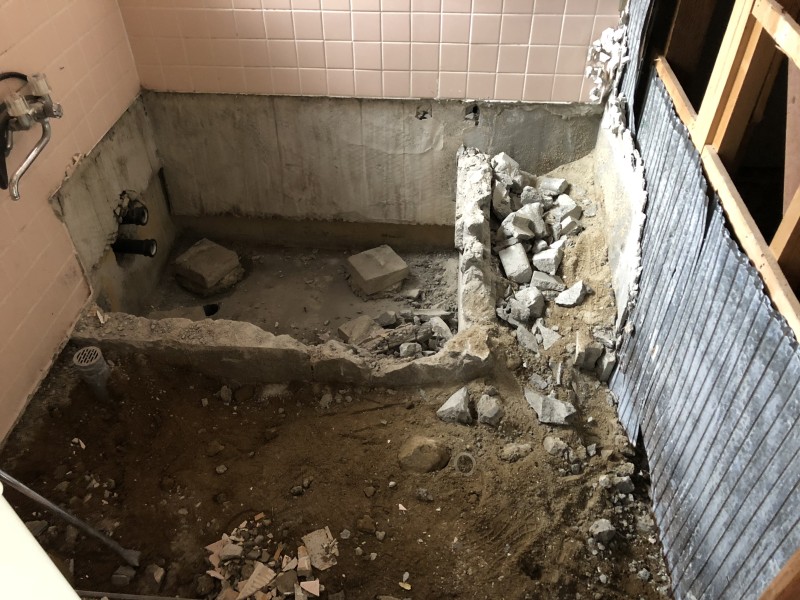 土間タイルをはつり、ユニットバスが入るように土の掘り下げも行います!
