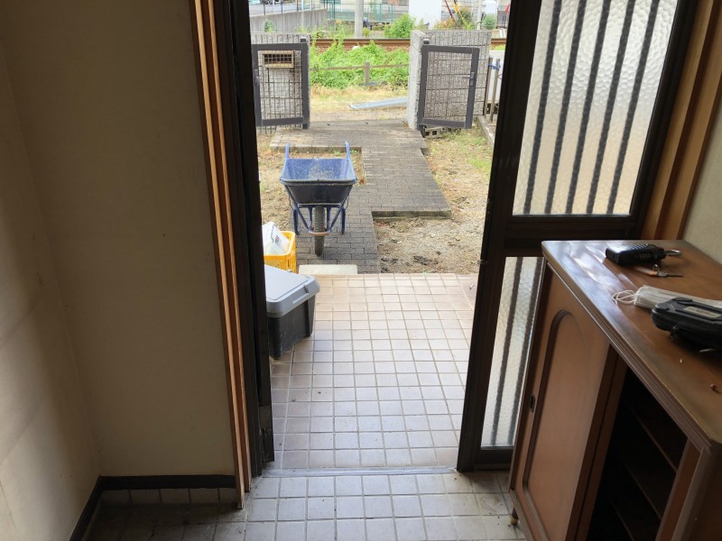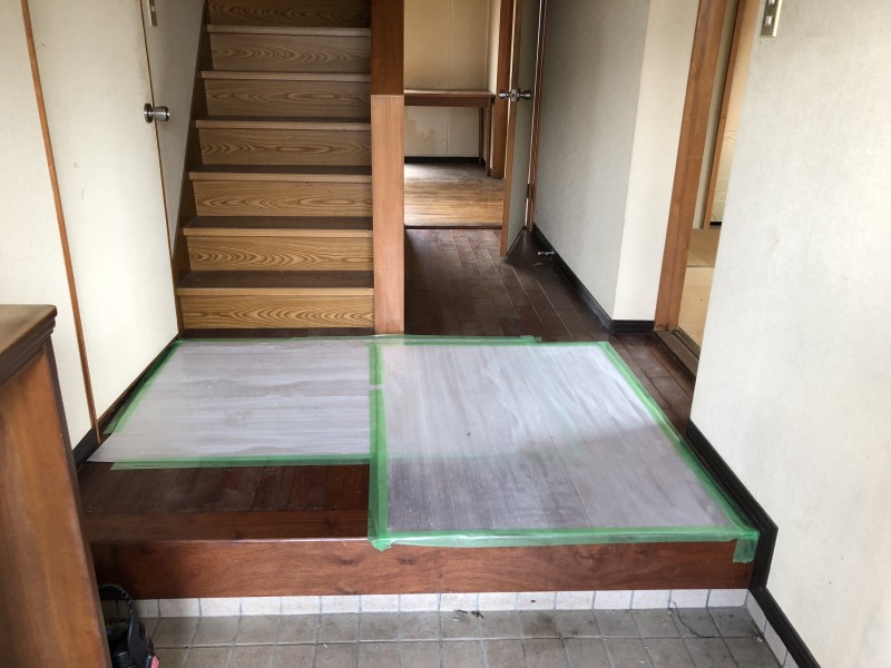 先ずは個人宅様なので、汚さないよう搬出経路を養生します。