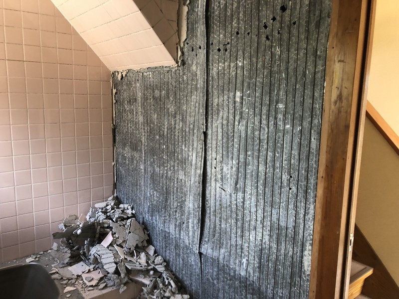 まずはラス壁を撤去し、ユニットバスが入る有効幅だけは確保します。
