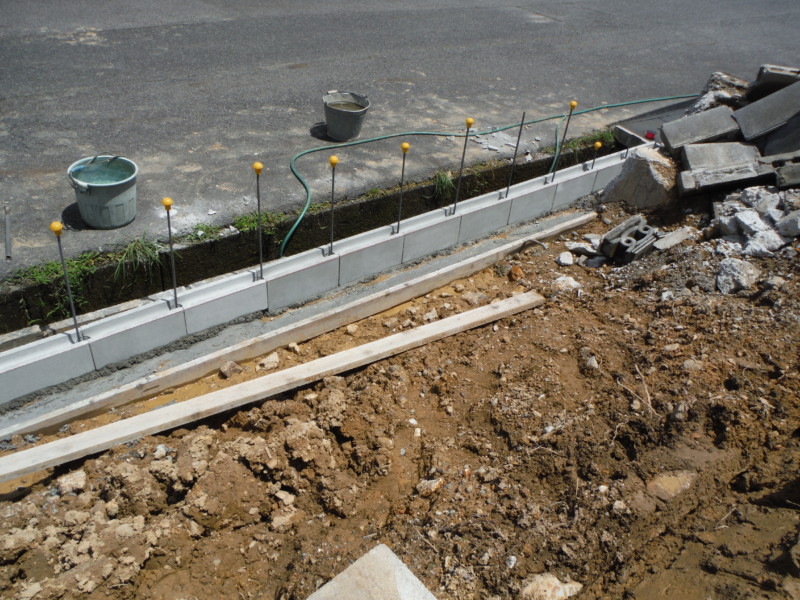 時間をかけて乾燥すれば、道路沿いのブロック基礎がきれいに完成しました。