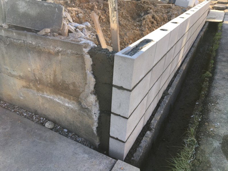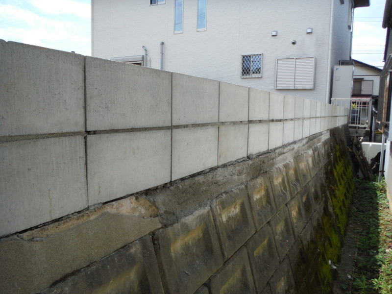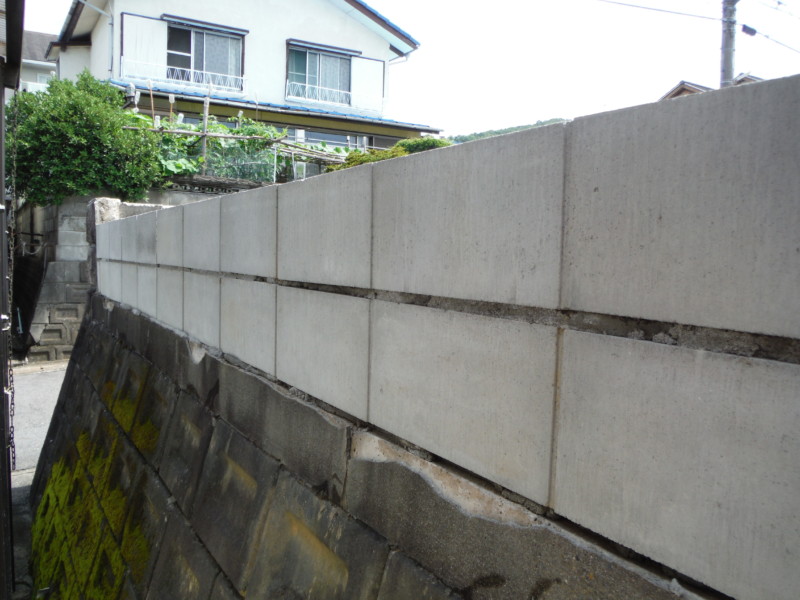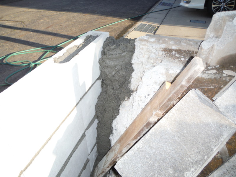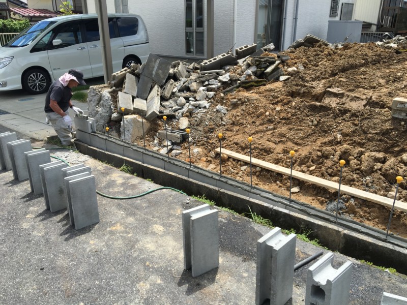 隣地との境界に注意しながら、既存のブロックを一度すべて撤去し、基礎の上に再度ブロックを設置します。