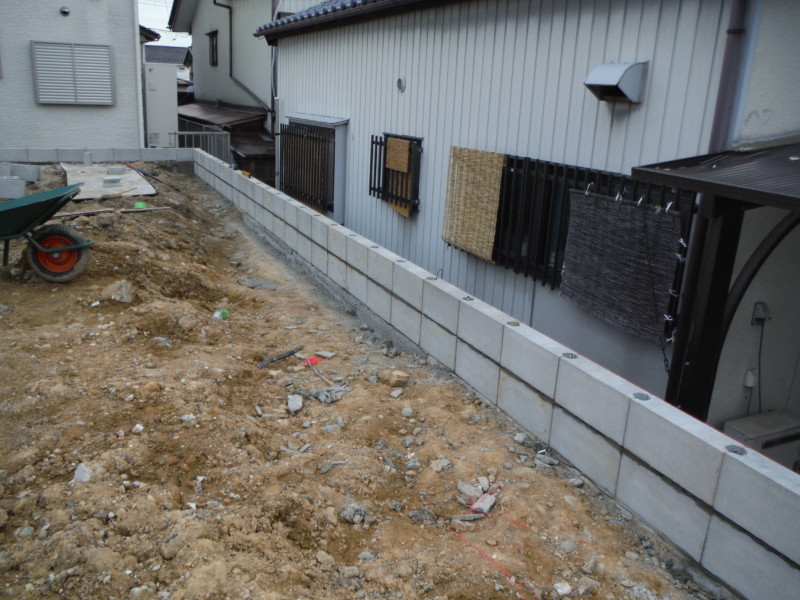 次に、隣地との境界部分にもブロックを積み上げていきます。