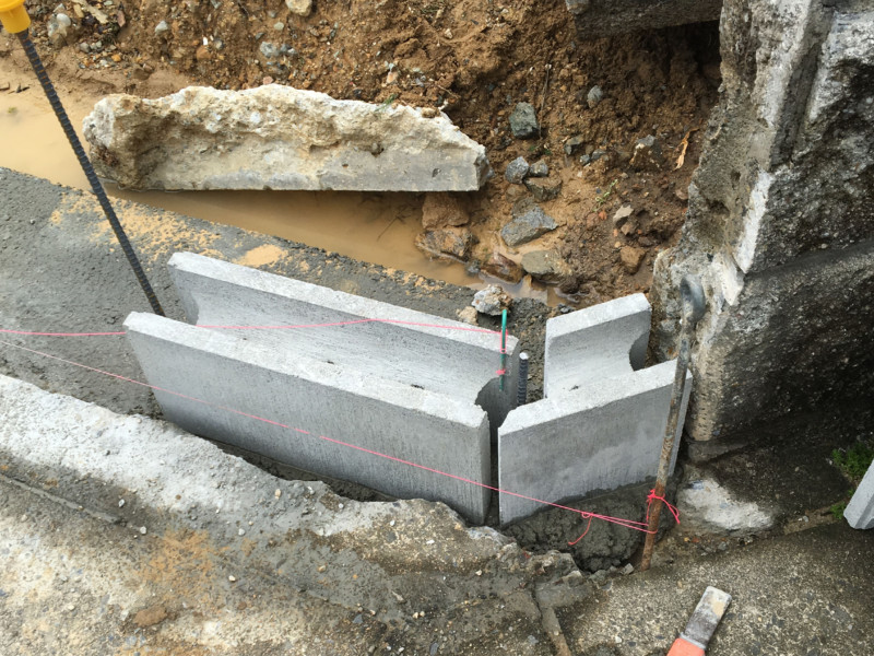 依頼主さんは、隣の家にご迷惑をお掛けしないように塀の解体工事ができるのか、道路に面した側溝まわりもかなりガタガタになっているので、きちんときれいに整備できるのか、を心配されていました。