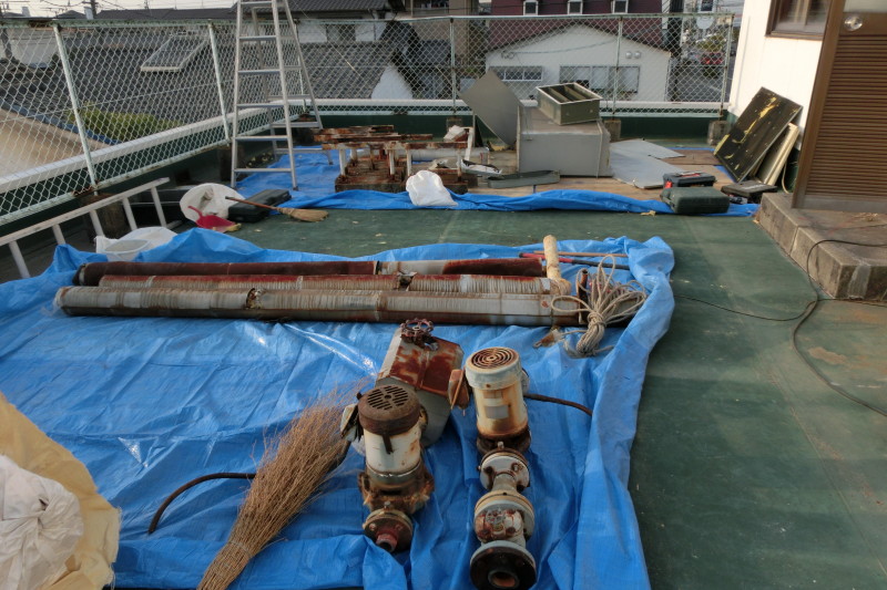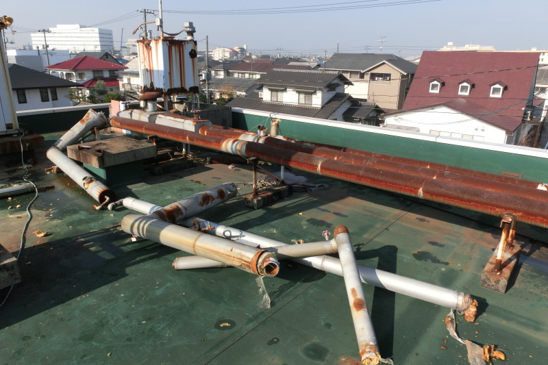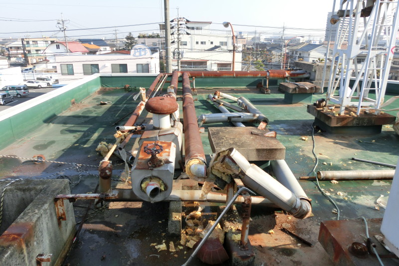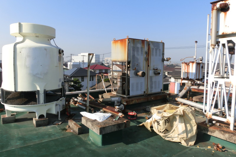 マンションのオーナー様が変わり、ビル屋上を有効利用したいというご要望から、不要となっている冷却塔や配管などを撤去することになりました。