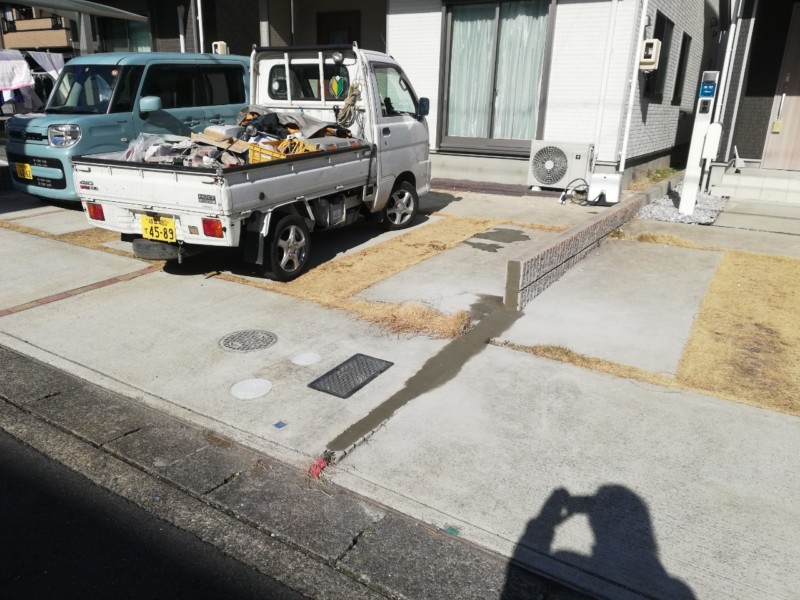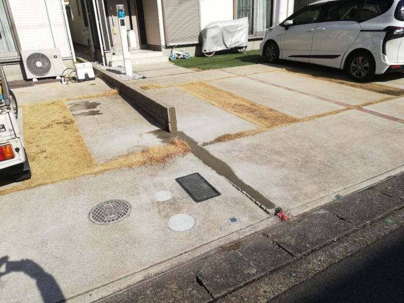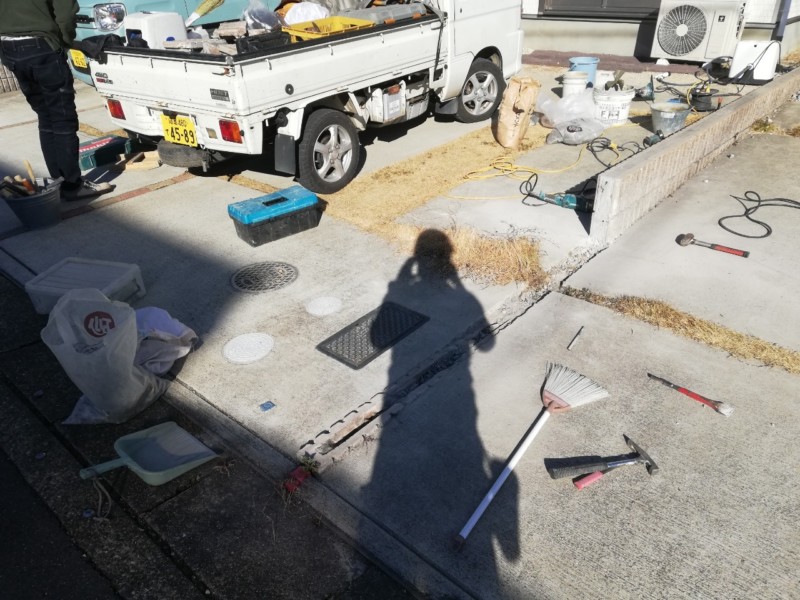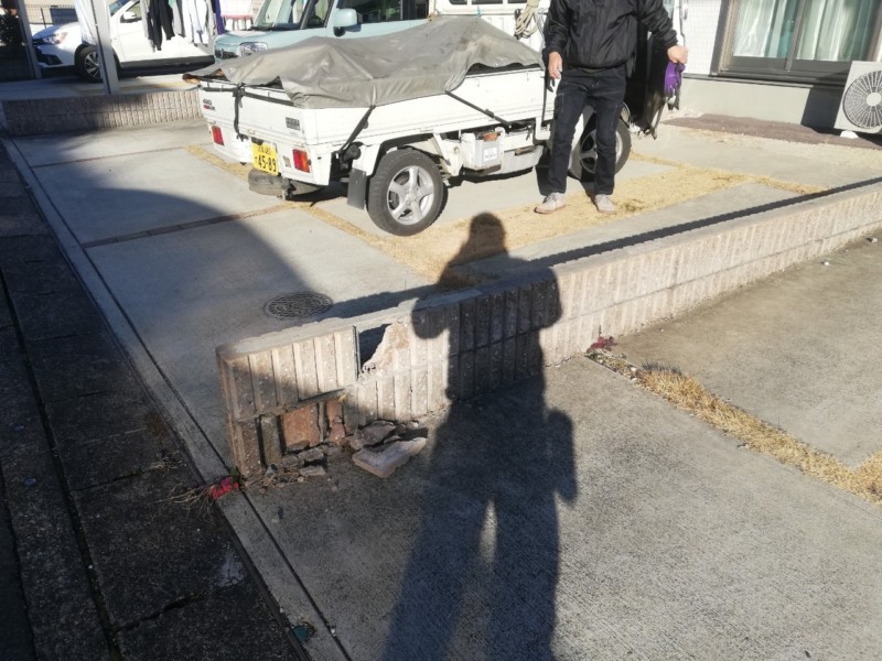 お隣さんとの境界にあるブロックが車の乗り入れの障害となっているため、双方の合意の元、撤去することとなりました。