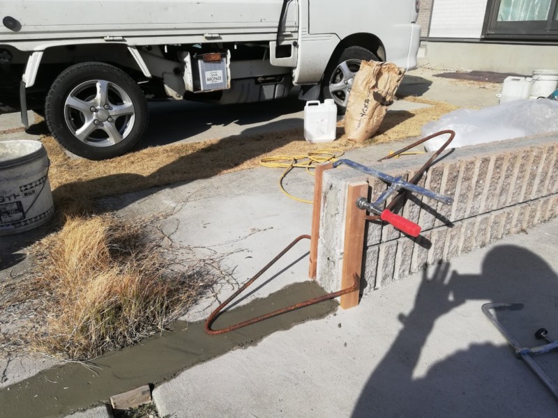 残っている立ち上がりブロックの断面も木枠を当てて、断面を補修します。