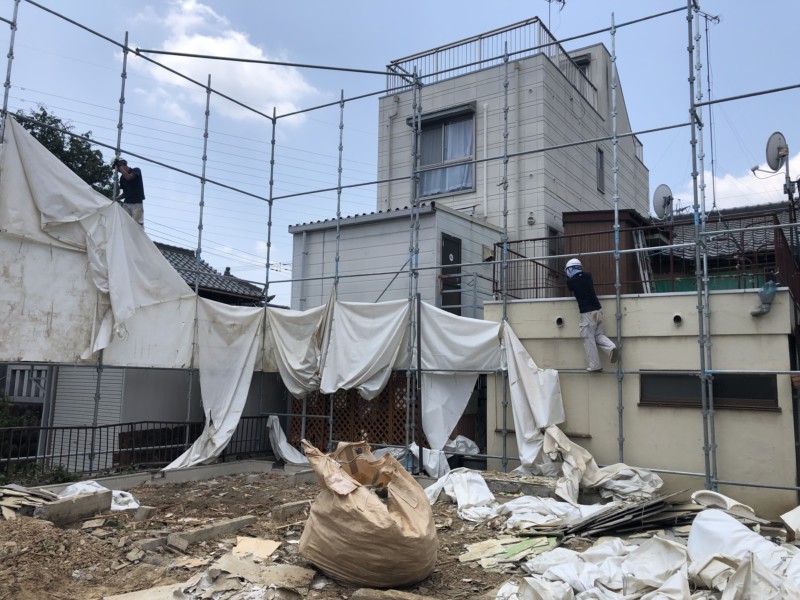 お隣さんが近いので、ご迷惑にならないように解体作業を進めます。