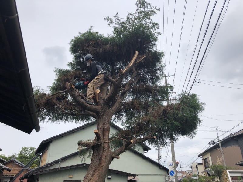 職人さんも頑張っております|岐阜市の庭木伐採