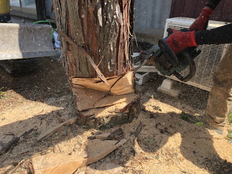 次は太い幹を切り倒します|岐阜市の庭木伐採