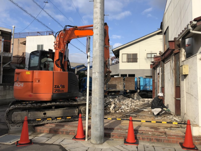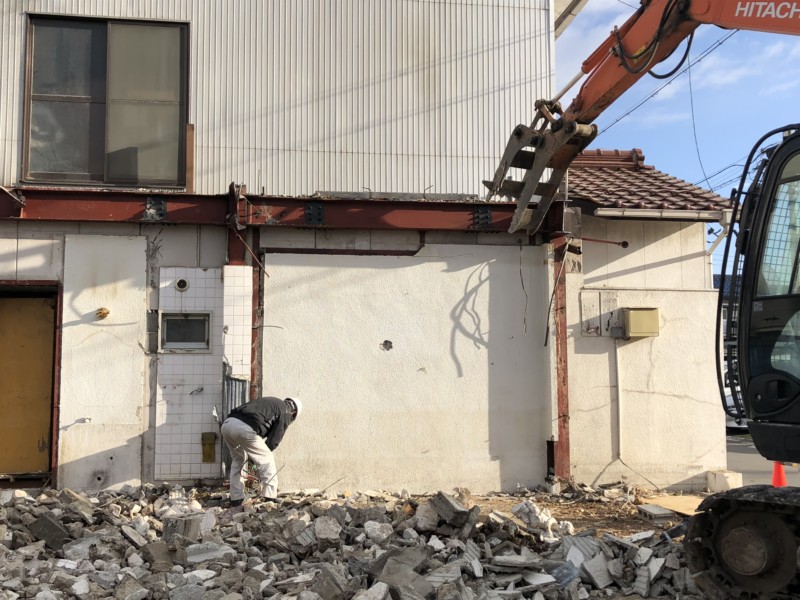 大部分は重機で取り壊し、隣の建物に近い部分は人の手も使いながらの解体になりました。