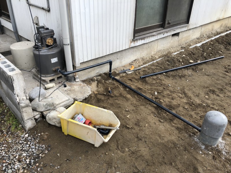 隣接している空き家の建物に、下水管と井戸の配管がつながっているので、解体後に配管の処理をすることになりました。