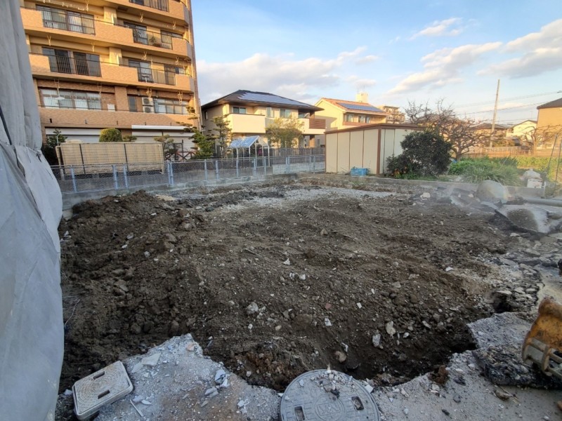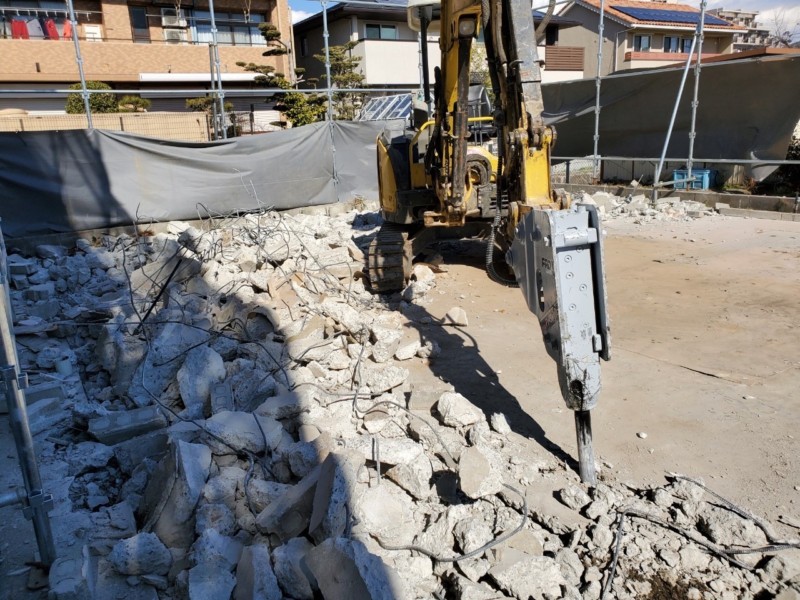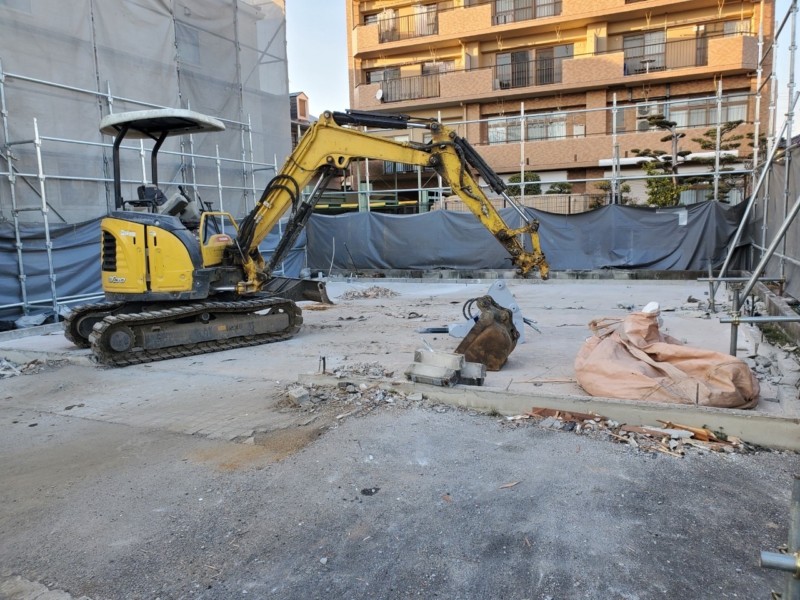 建物の取り壊しを終えて、基礎のコンクリートもすべて掘り起こしていきます。