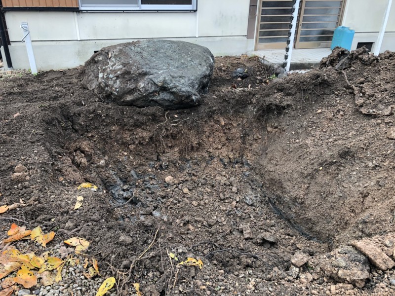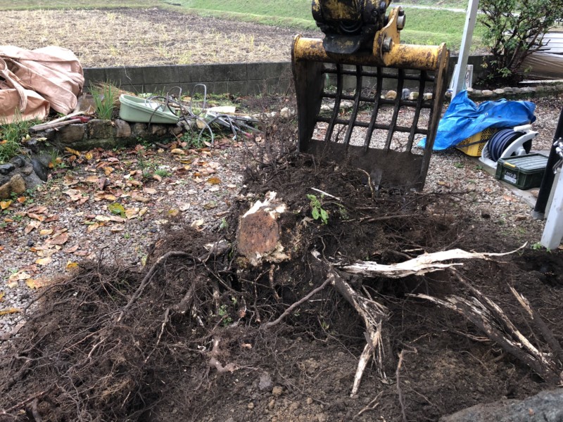 岐阜県可児市の庭木の伐根・庭石の撤去工事|お庭をキレイに更地にする
