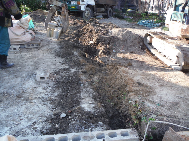 アスファルト道路面と同じレベル(高さ)まで、残土を撤去します。