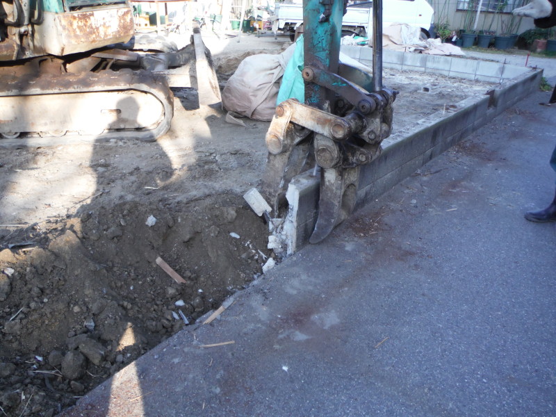 先日上屋がすべて撤去され、本日は基礎コンクリートと外構周りの撤去が中心でした。