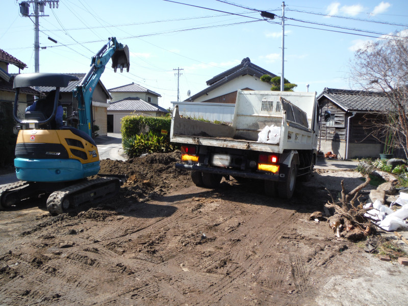 プレハブ撤去後は、敷地内の残土のすき取りです。