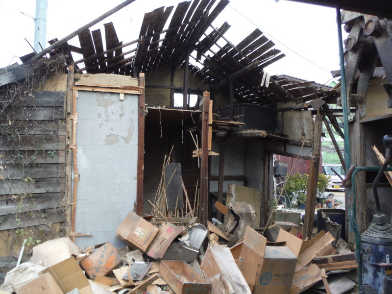 かなり老朽しており、解体中の倒壊に十分気を付けながらの作業です。