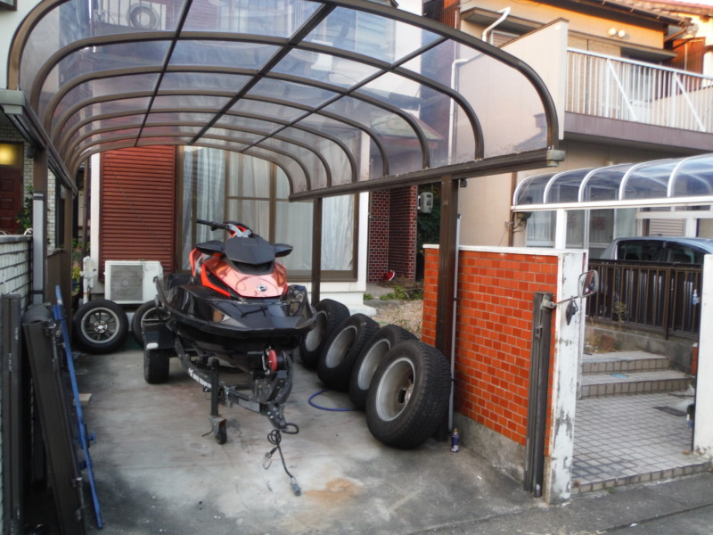 乗り入れができるように車庫側と高さを同じにして、車がもう一台駐車できるようになりました。