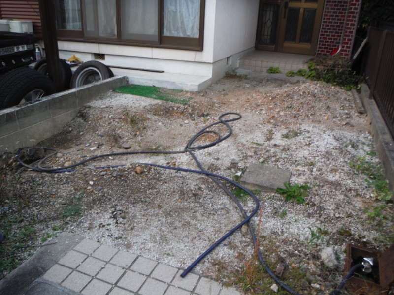 アプローチを囲んでいたコンクリートブロックをすべて搬出し、土があらわになりました。