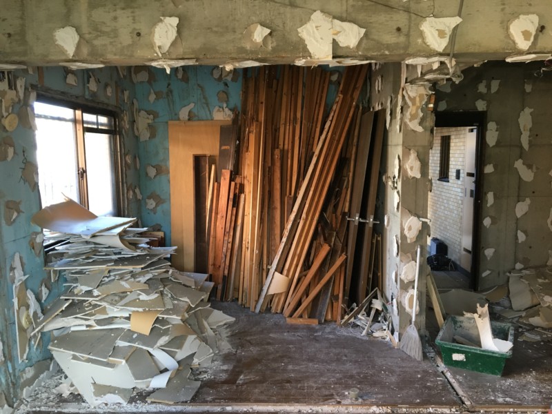 建築屋さんからのご依頼で、マンションのリフォーム工事にともなう内装解体です。お子様が大きくなり、生活の流れが変わったため、間取りなどを大きく変更をされるようです。