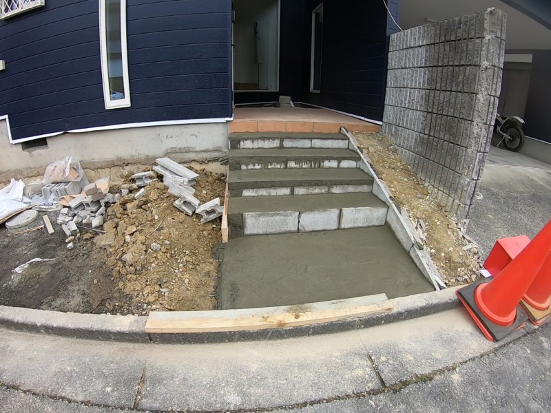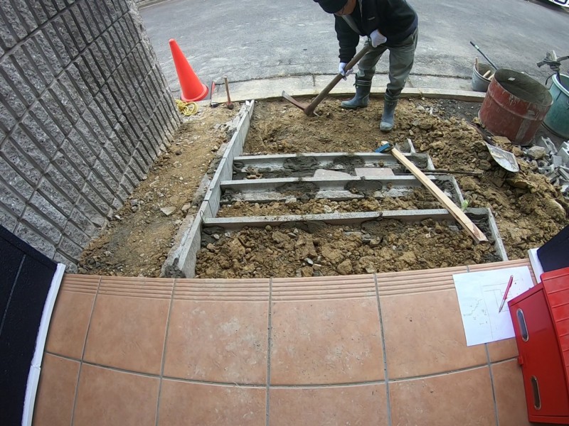 工事内容 花壇の撤去、階段工事、タイル工事、土間コンクリート打設