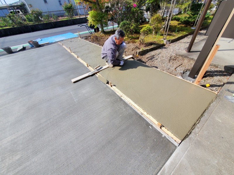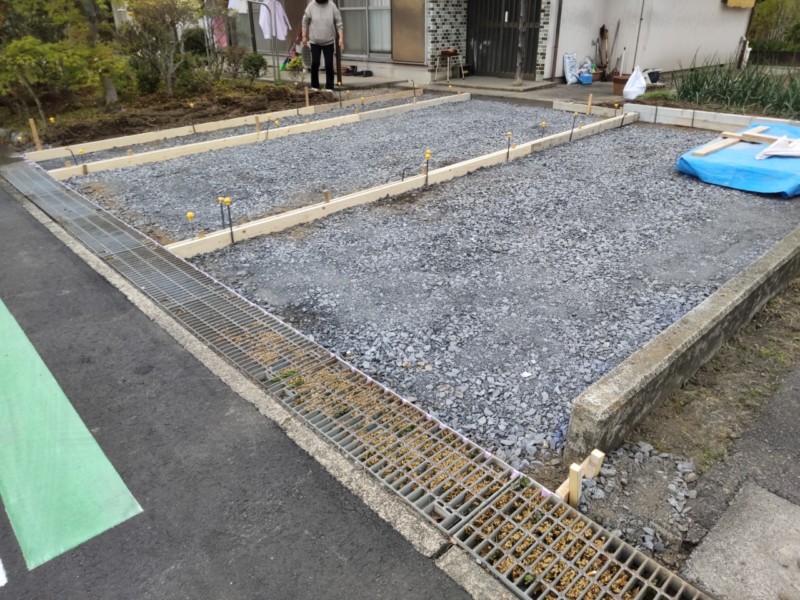 工事内容 庭の解体、土間コンクリート打設、ポスト設置