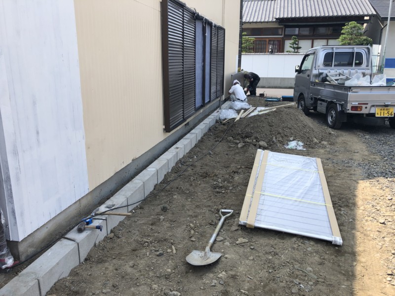 今回ご紹介するのは、隣地境界のブロック新設と目隠しフェンスの設置工事です。お隣同士でそれぞれブロックと目隠しフェンスを設置しました。
