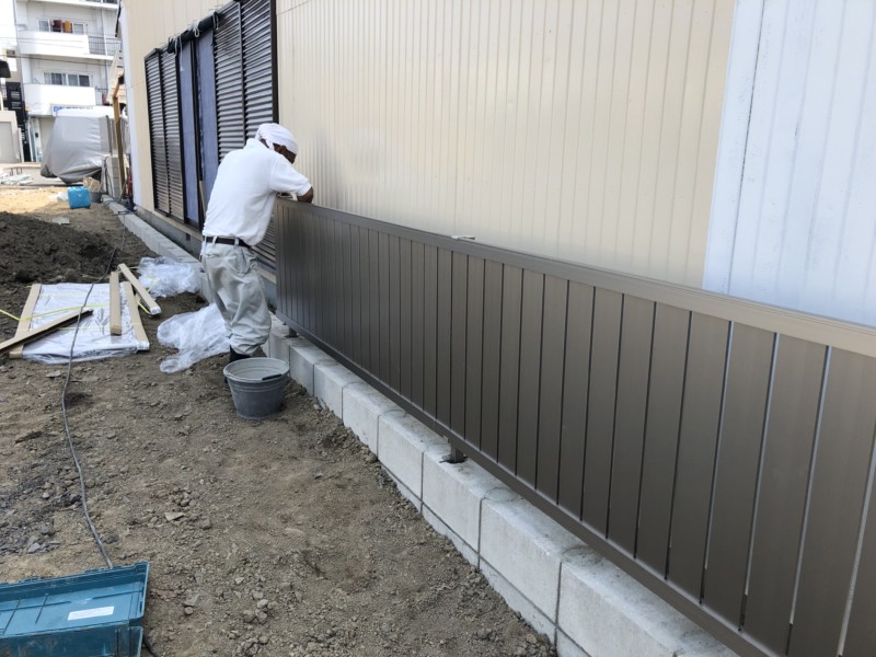 続いて、ブロックの上にフェンスを設置していきます。今回初めて仕切りを取り付けられたとのことでしたが、フェンスは防犯対策として大変有用です。キレイに目隠しフェンスも設置できました。