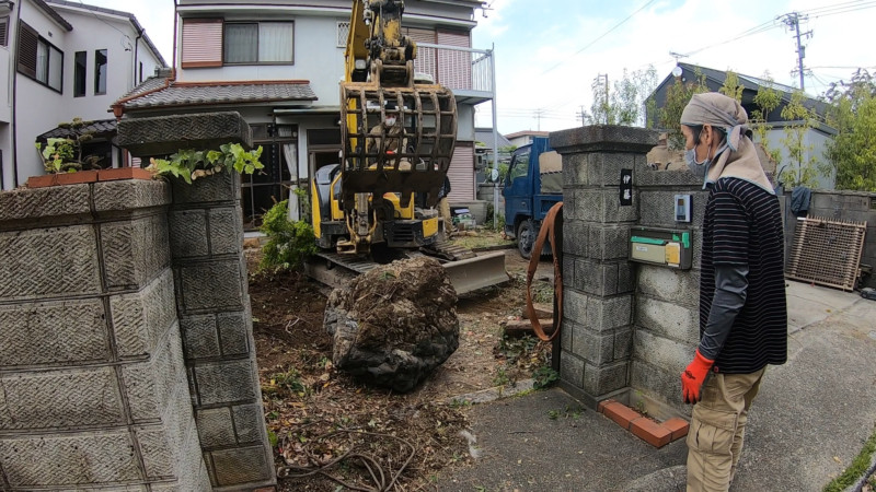 続いて、庭石を撤去します。