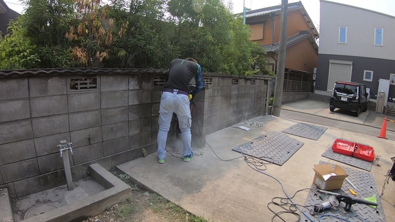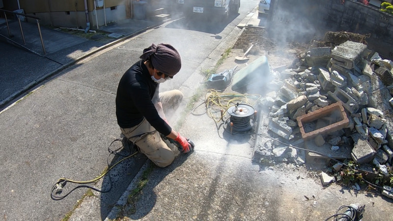 既存の残す土間まで割れてしまわないよう、カッターを入れてから割っていきます。