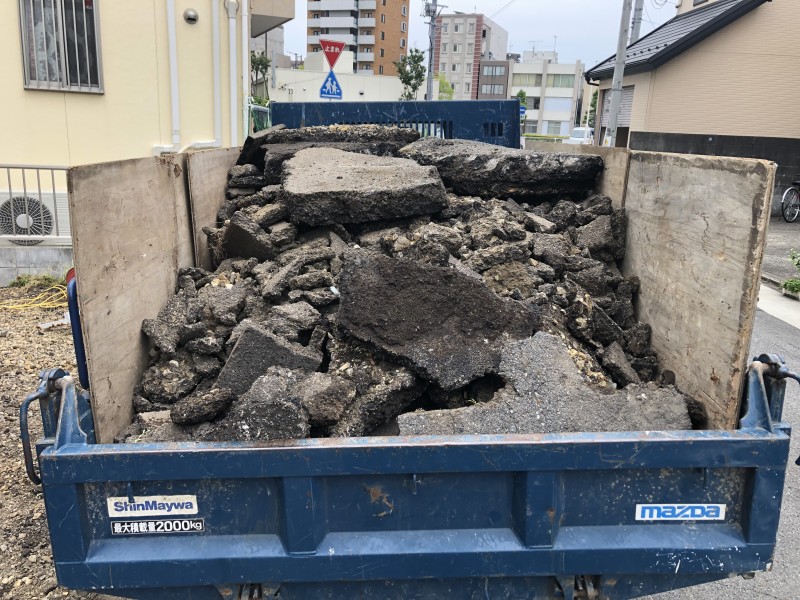 アスファルト舗装の下に隠れたガレキがあれば、それも撤去します。