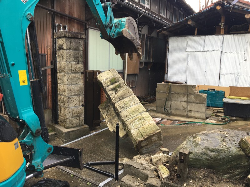 今日は岐阜県美濃加茂市でブロック門柱の撤去工事を行いました。