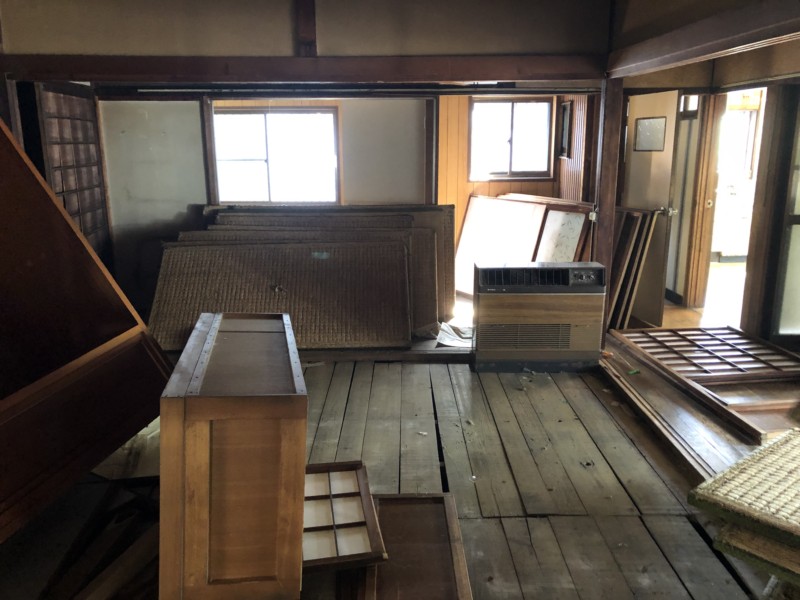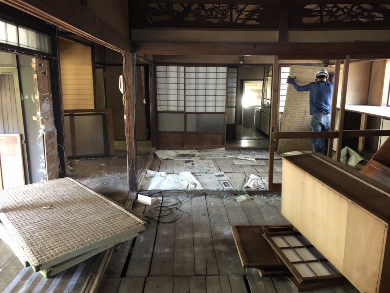 まずは室内の残置物を撤去してから、重機による解体作業です。