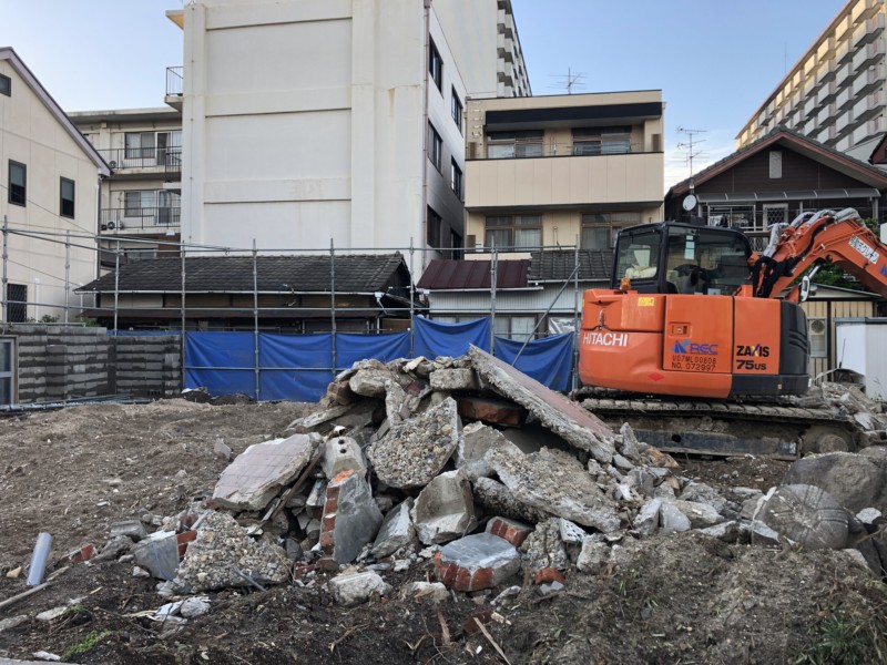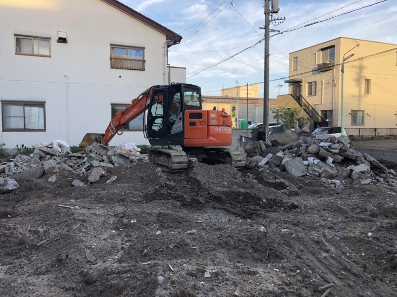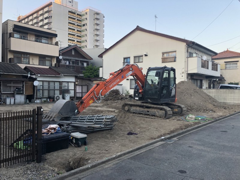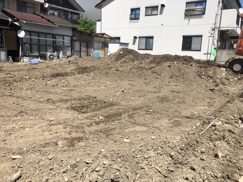 新築時の敷地のレベルに合わせて、不要な分の残土を集積して撤去します。