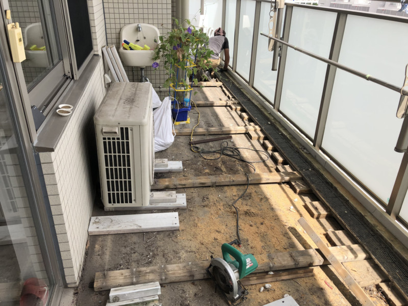 ウッドデッキの大きさもベランダ全面のため、3日程度の工事となりました。