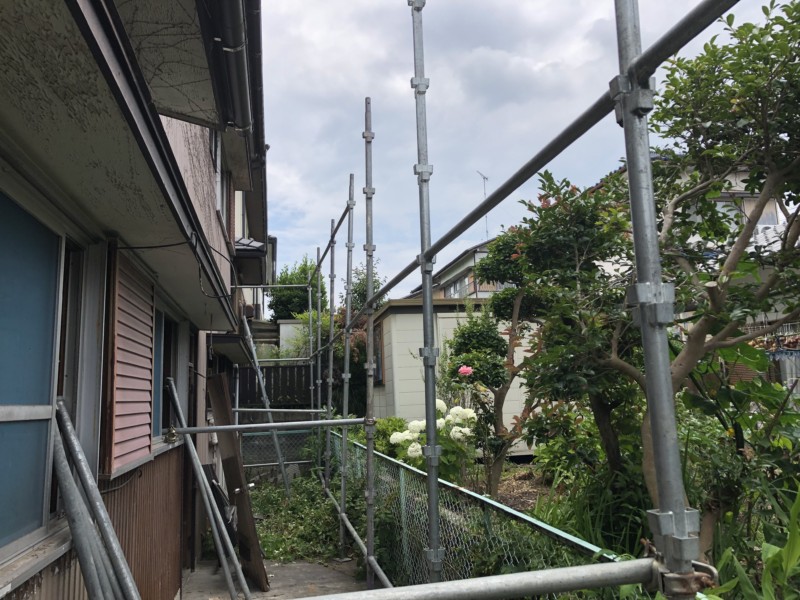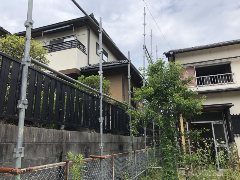 先ずは防塵対策でお隣さんにご迷惑おかけしないように、養生シートでしっかり対策します。