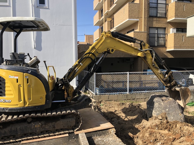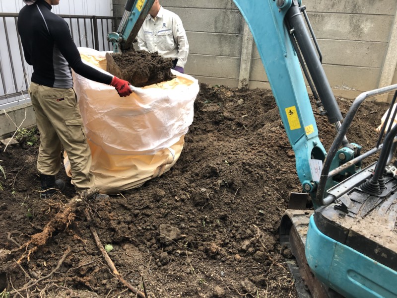 手作業で割ることもできるのですが、『どちらにしても費用をかけるより、埋めてしまってほしい』というご要望からです。