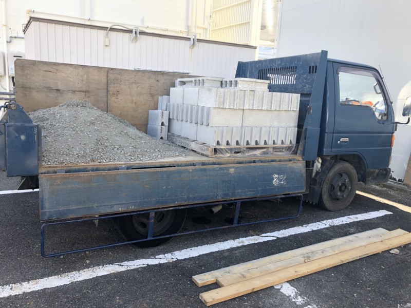 費用のことを考えると、小さな重機とユニック車、ダンプは必要なため、隣地をお借りして作業ができるようにご協力をお願いしました。