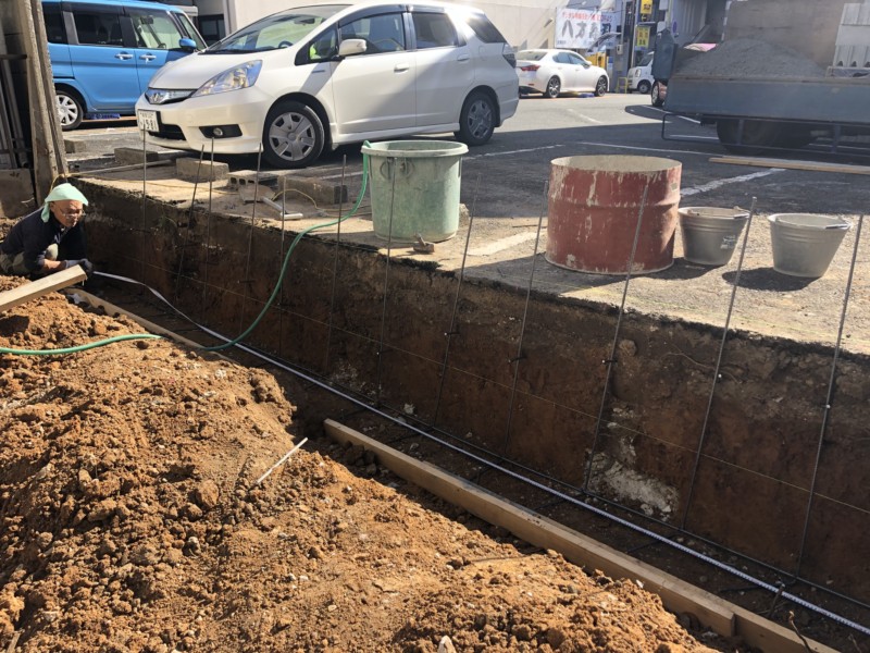 鉄筋は、基礎フーチングとブロックの縦横に入れることで、丈夫はブロックを作ります。