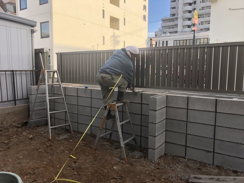 • 隣地境界のコンクリート塀を撤去し、新しくブロックを6段積み、目隠しフェンスを設置