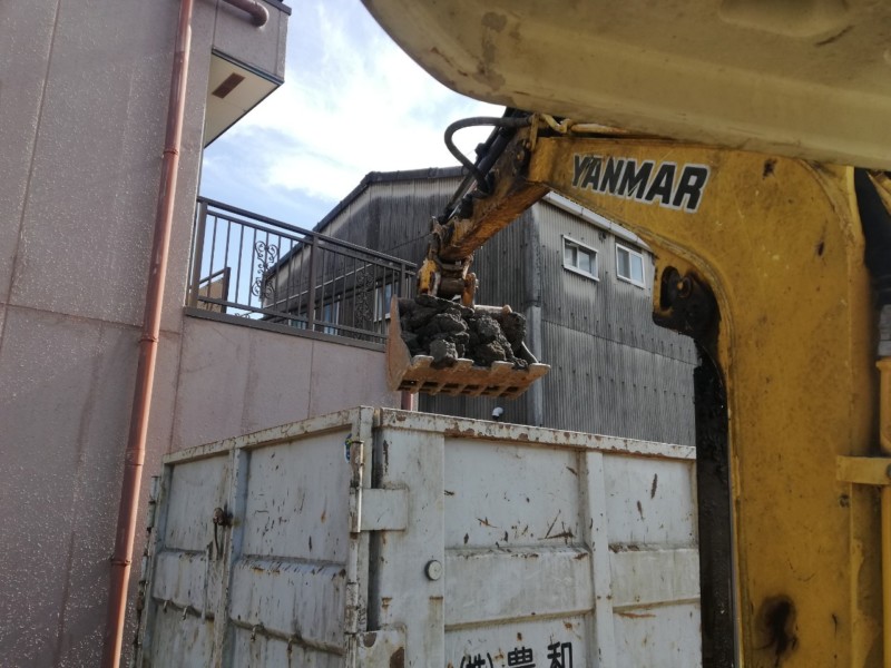 最後に敷地内奥の土間コンクリートを撤去し、搬出しました。
