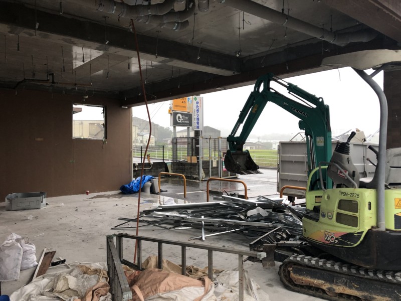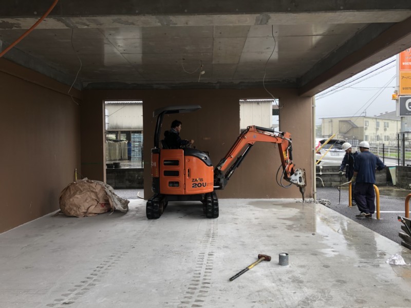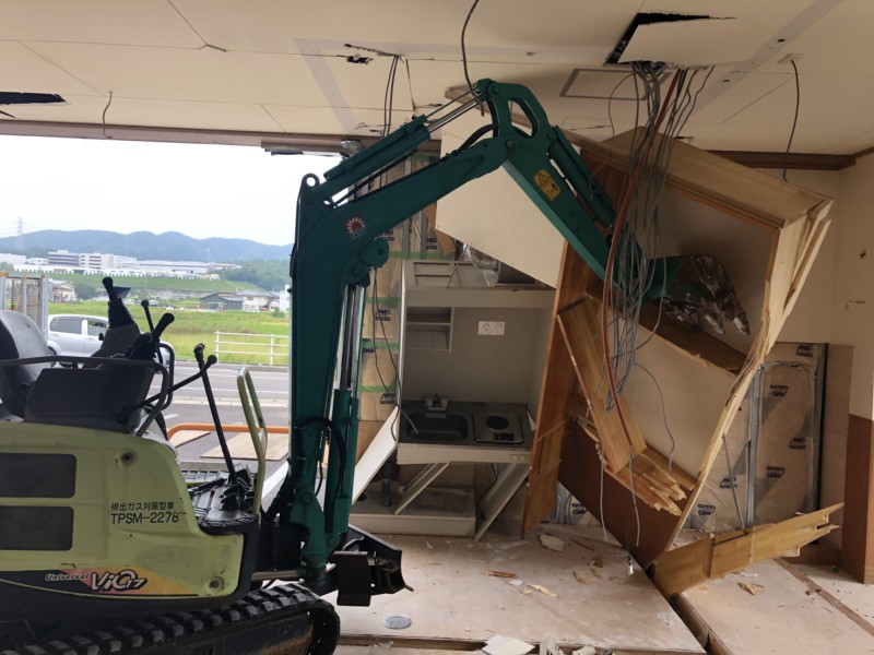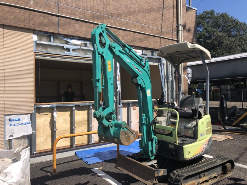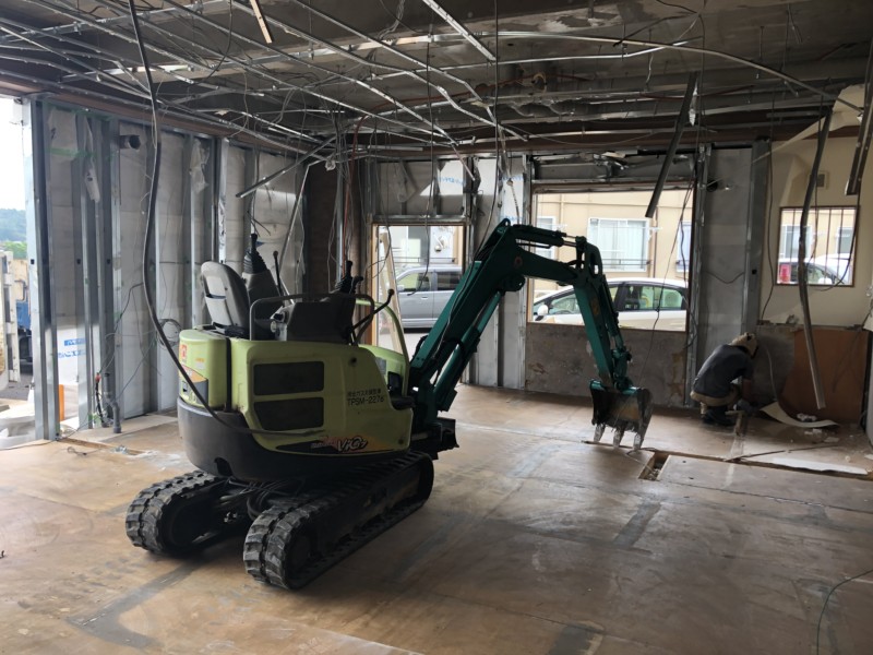 今回の内装解体は1階の店舗だったため、小さなマメユンボを入れました。
