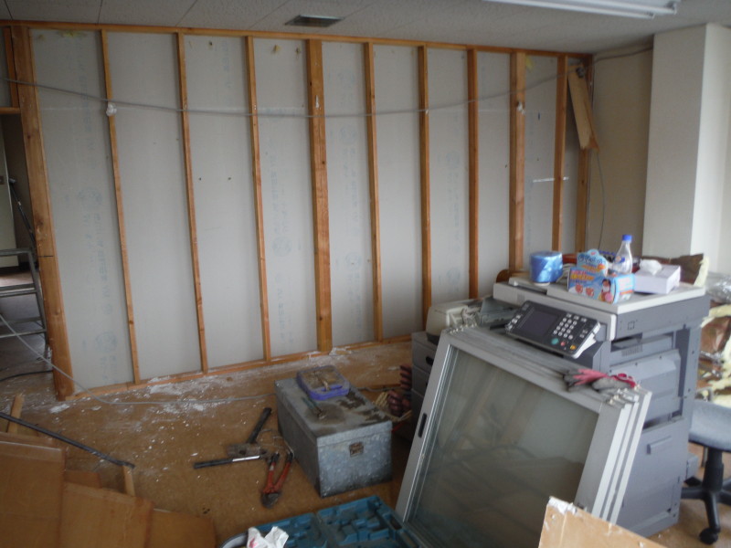 工事内容は、間仕切り壁の解体撤去と不用品の撤去です。