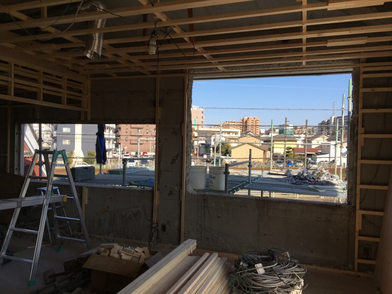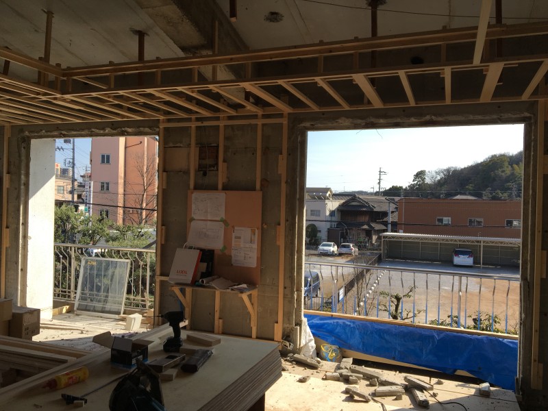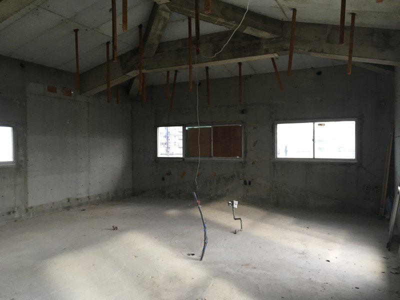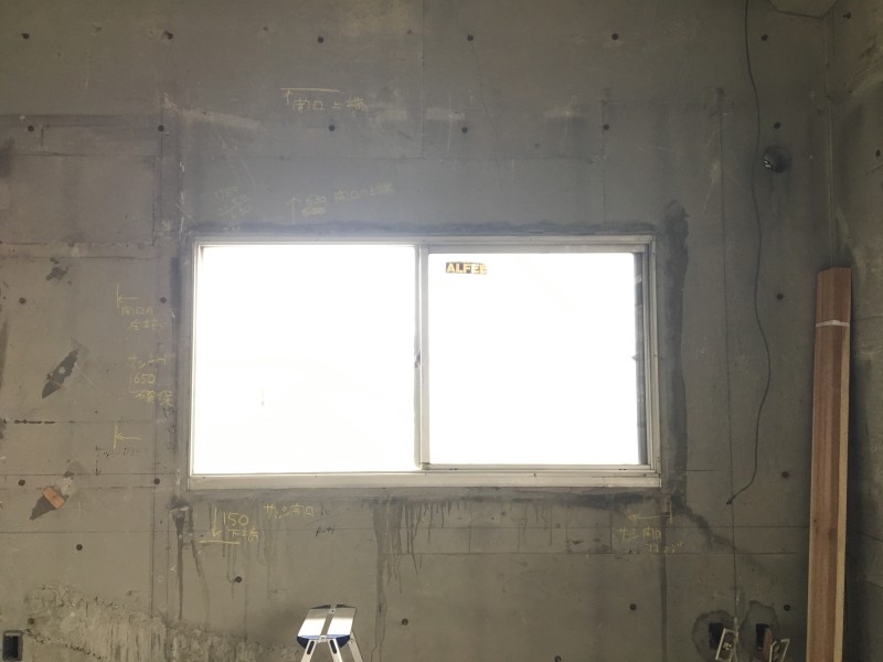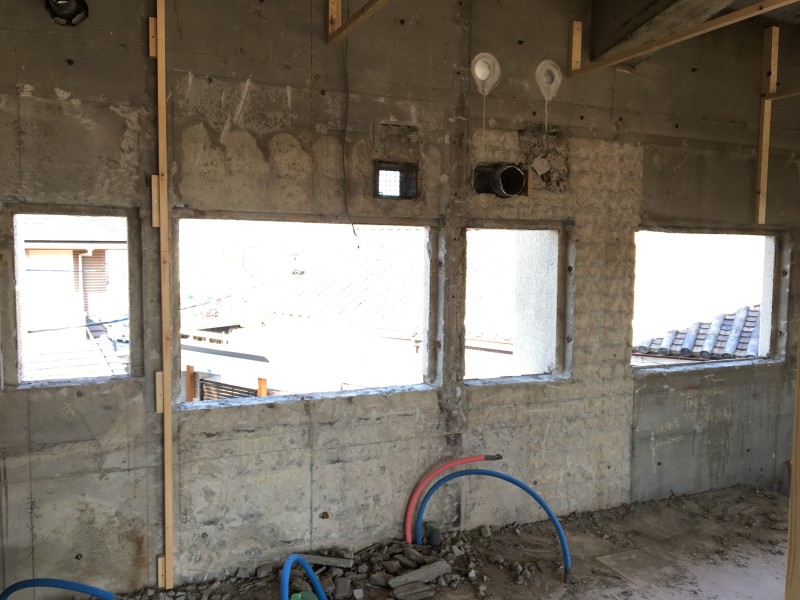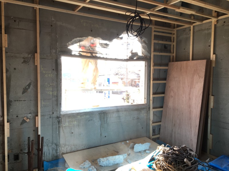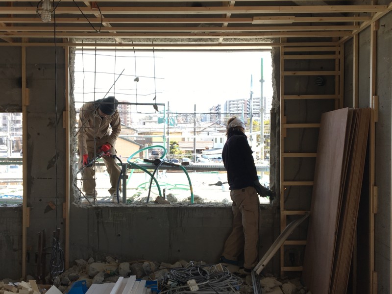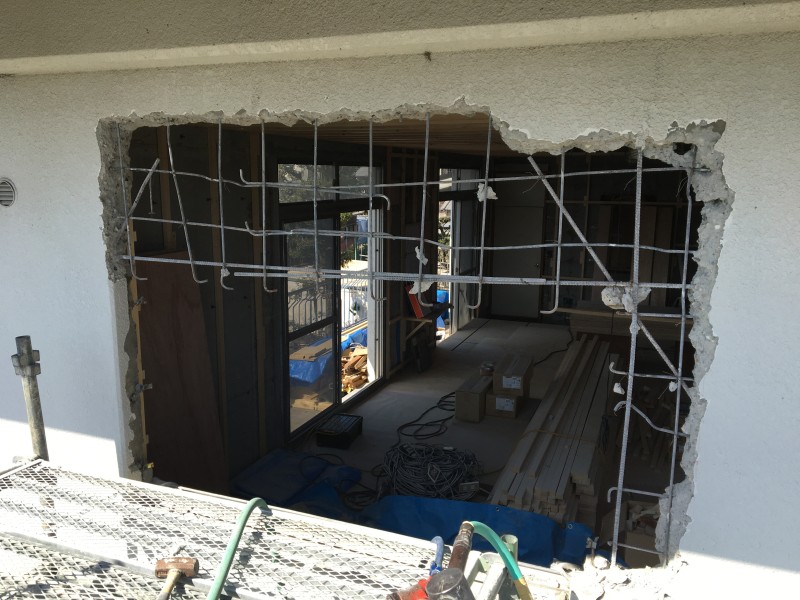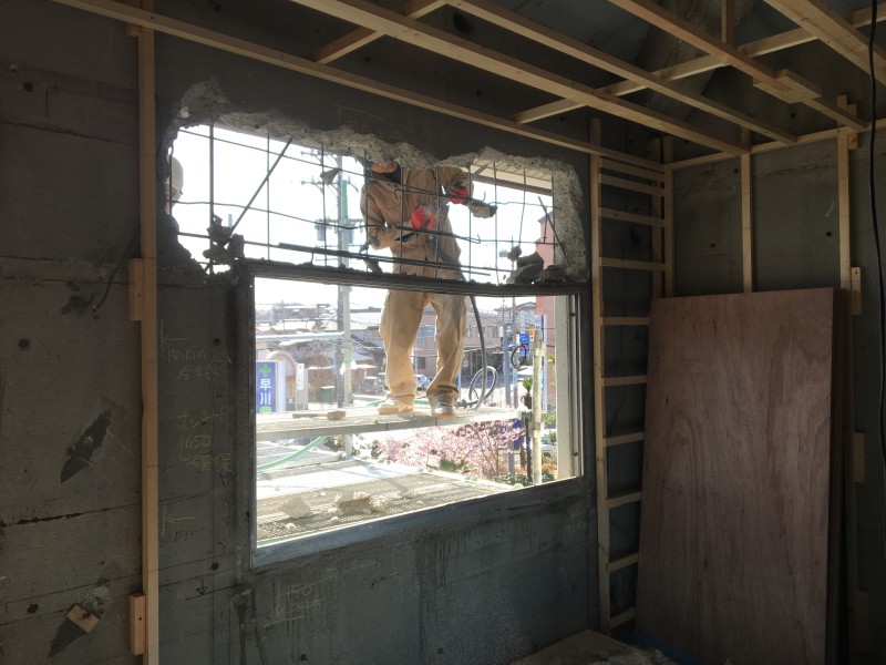 コンクリート住宅2階の窓枠を大きくするため、はつり工事を行いました。
