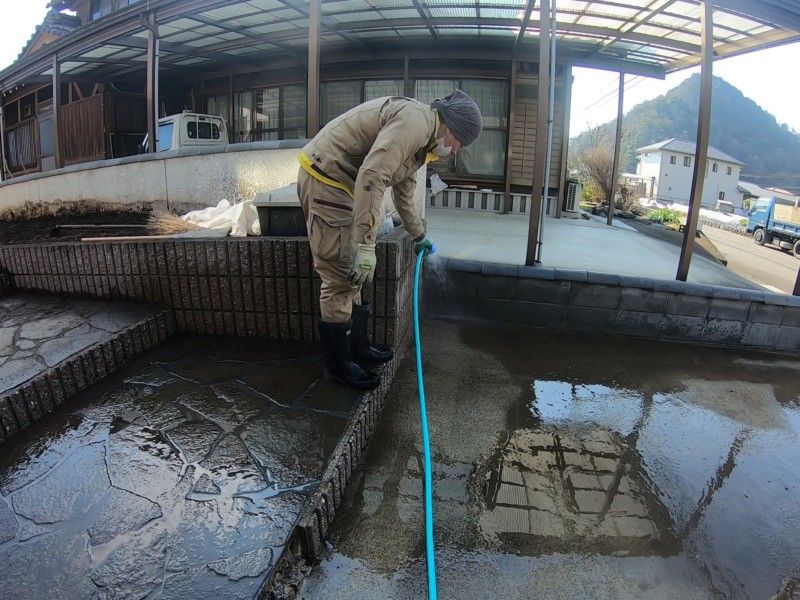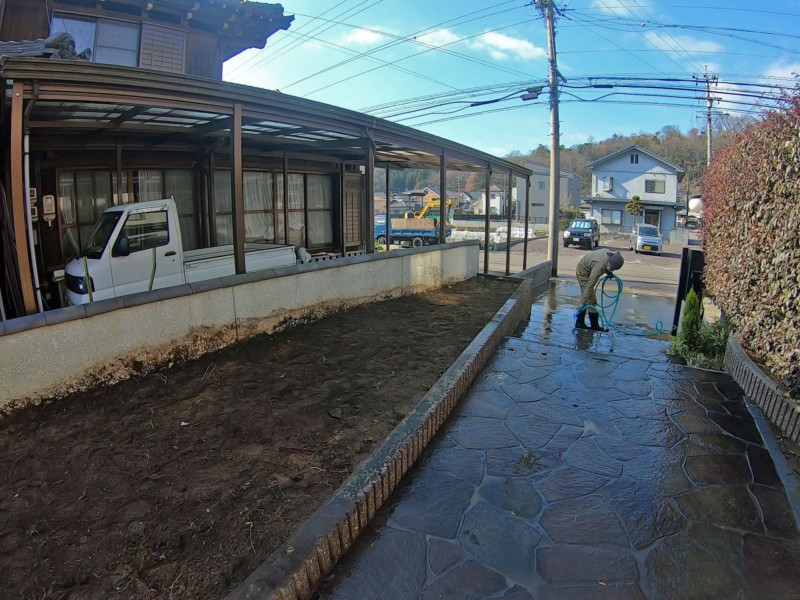 最後はキレイに流して、お庭の解体工事は無事に完工しました。