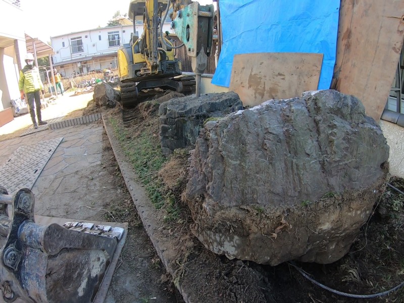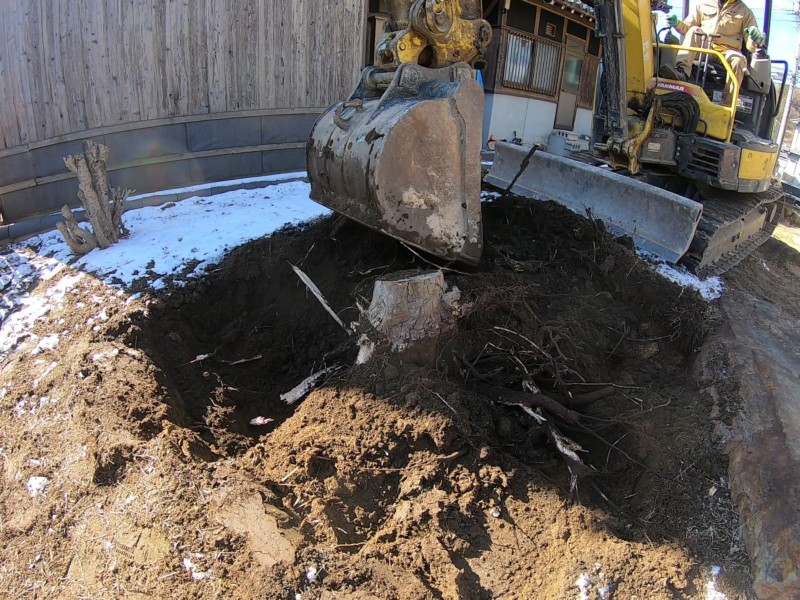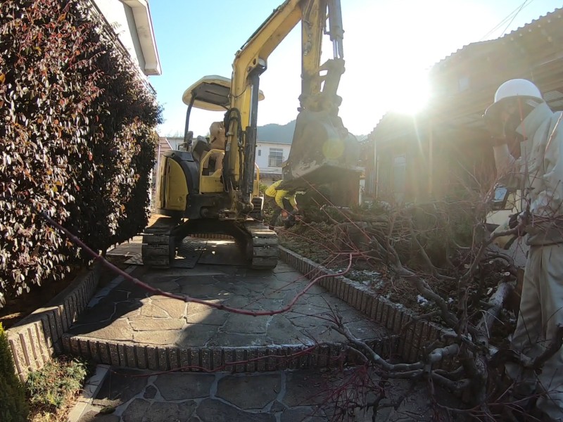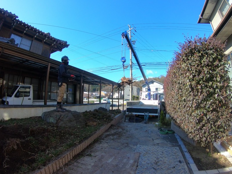 大きな庭石や庭木をキレイに撤去して、お庭をつくりなおすご予定のようです。